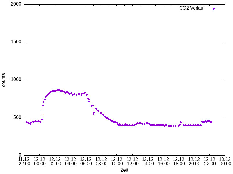 CO2 Messung im Schlafzimmer: Verlauf der letzten 24 Stunden! CO2 Verlauf |